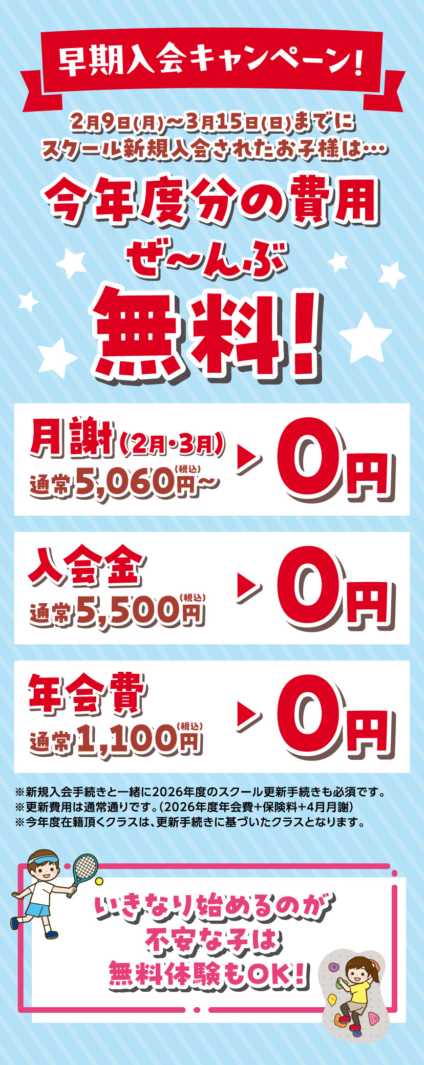 ※早期入会のお手続きはご来店での受付となります。※